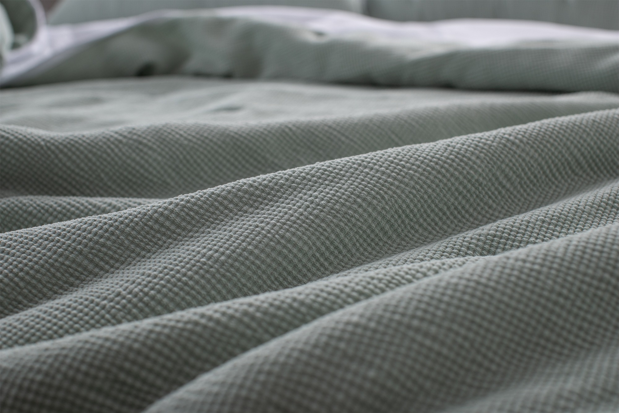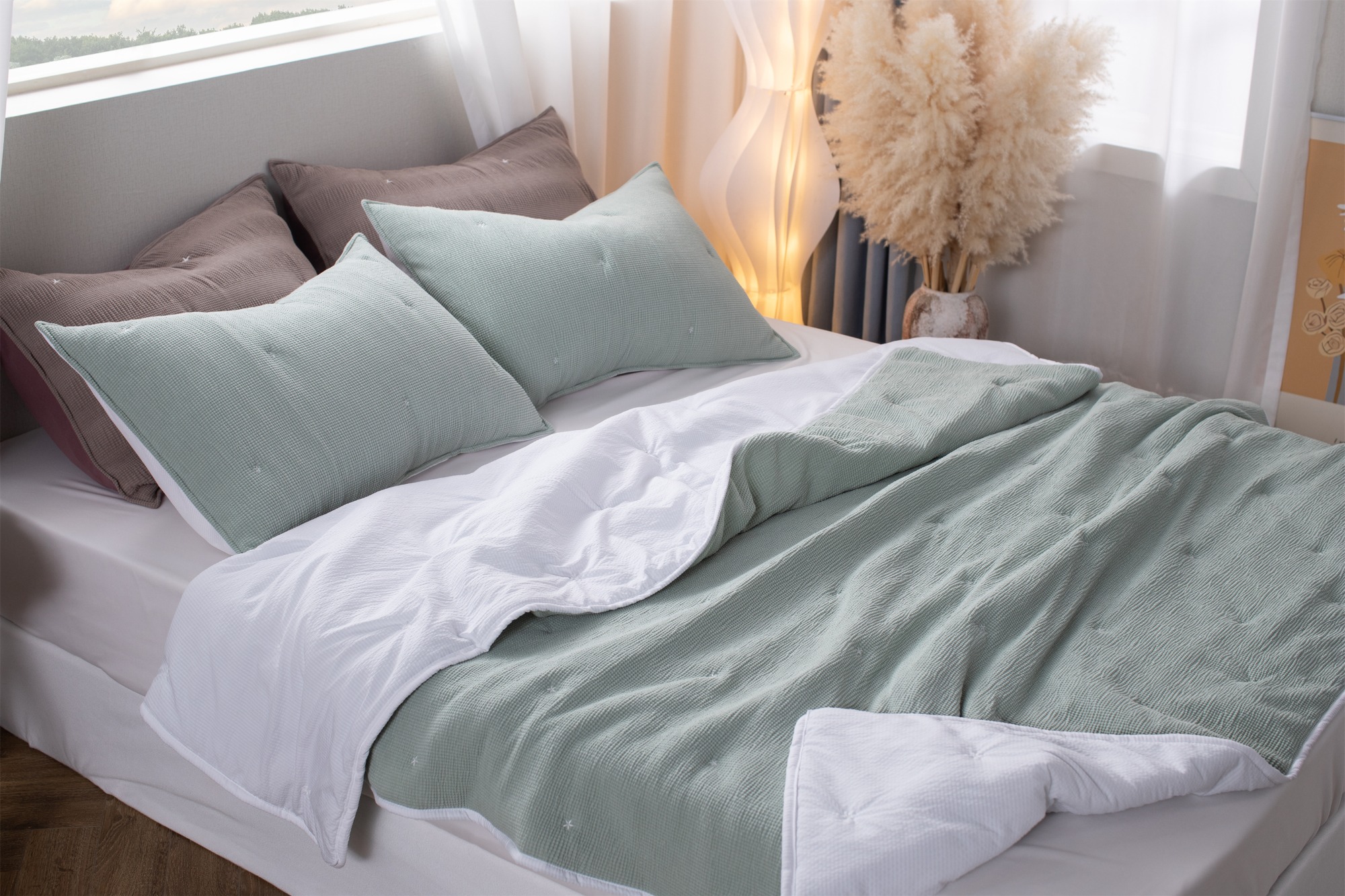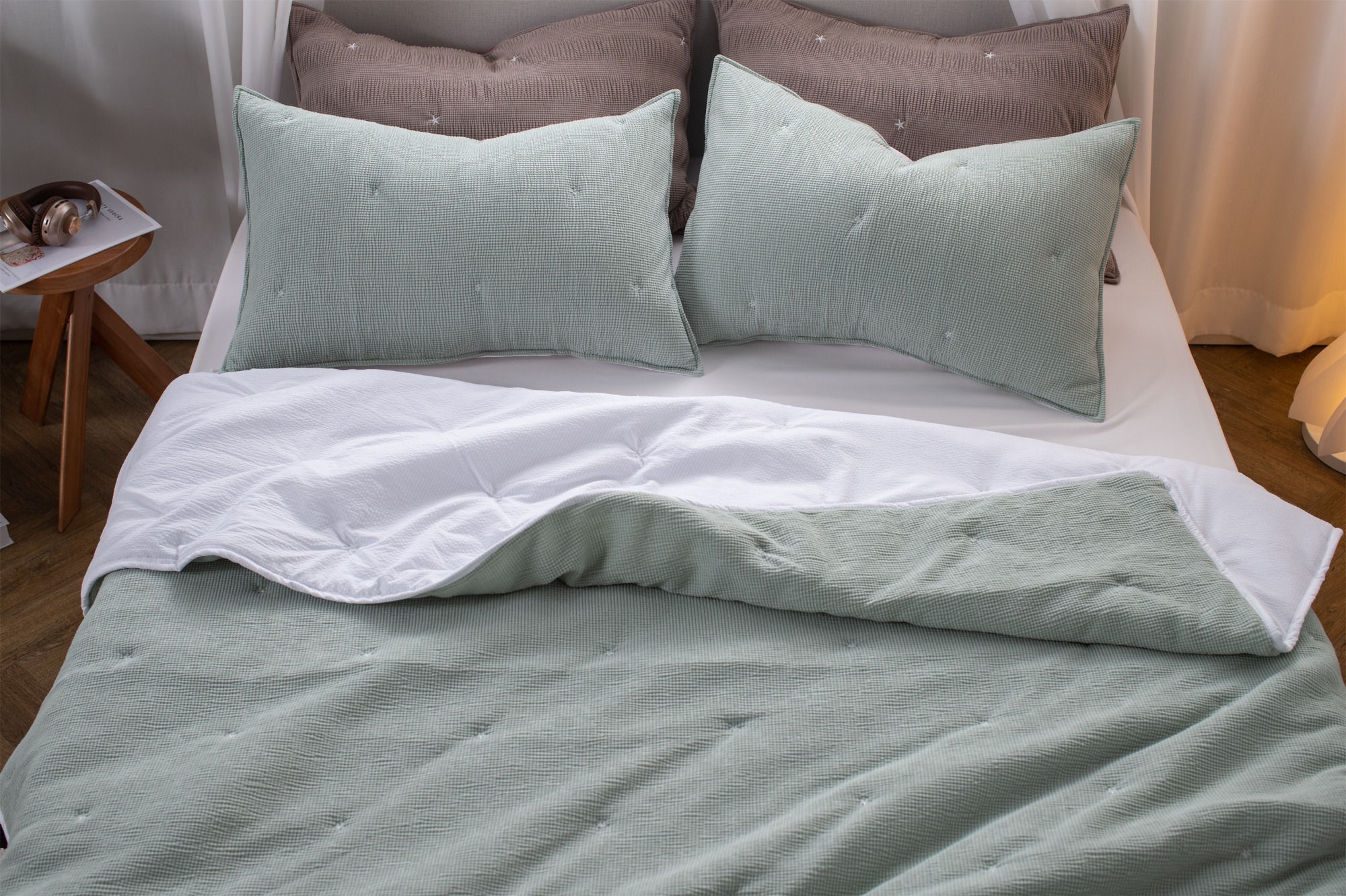 Made with crinkled corduroy and delicate embroidery, this lightweight quilt brings a textured look and breathable comfort, perfect for year-round use.
