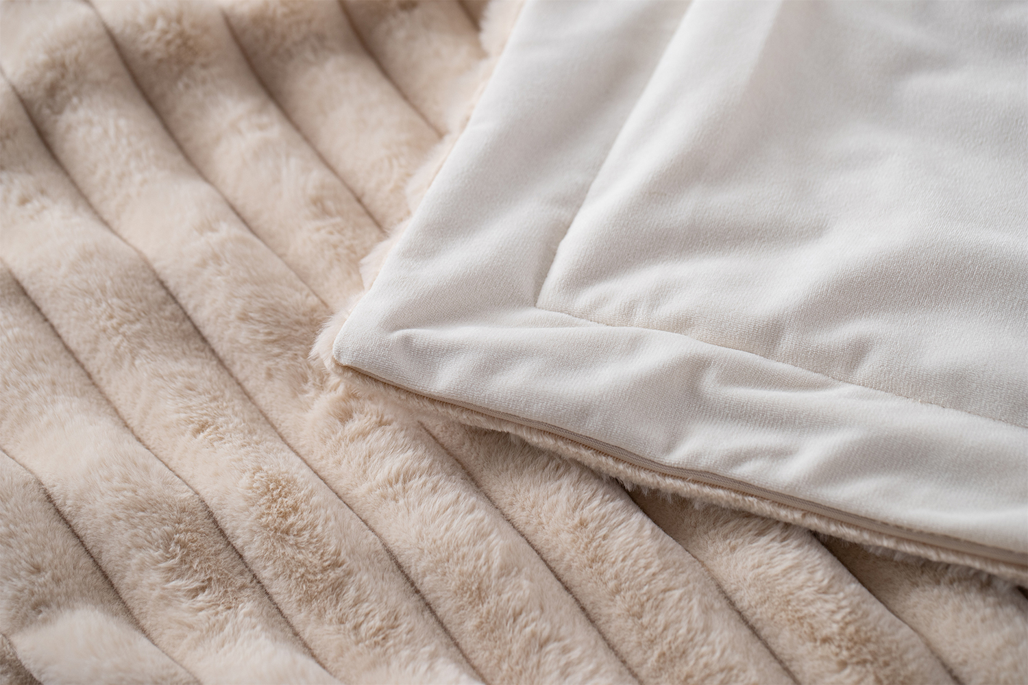 Stripe Rabbit Fur Quilt Set