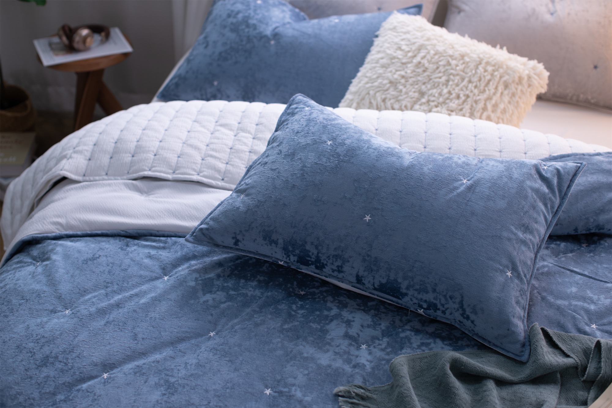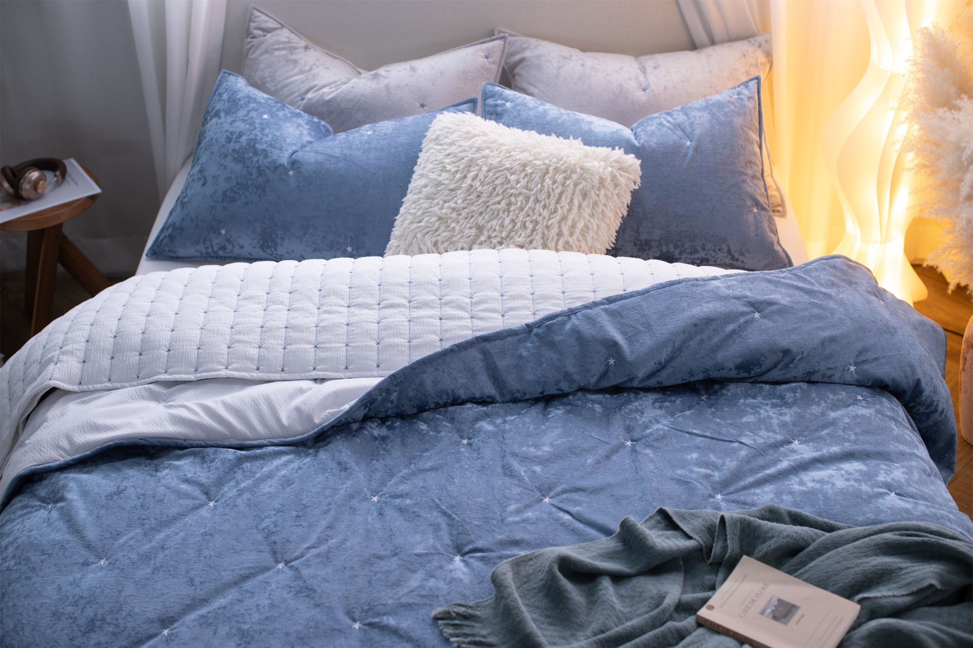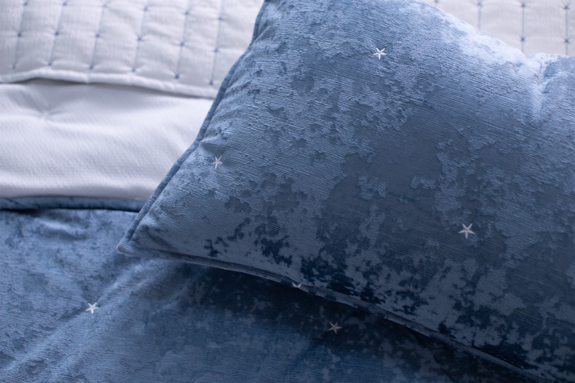 Made with Italian ice velvet and refined crinkled stripes, this lightweight quilt offers rich texture and enhanced fabric quality with a luxurious touch.