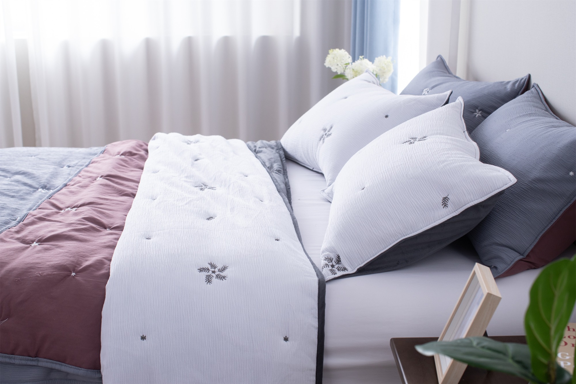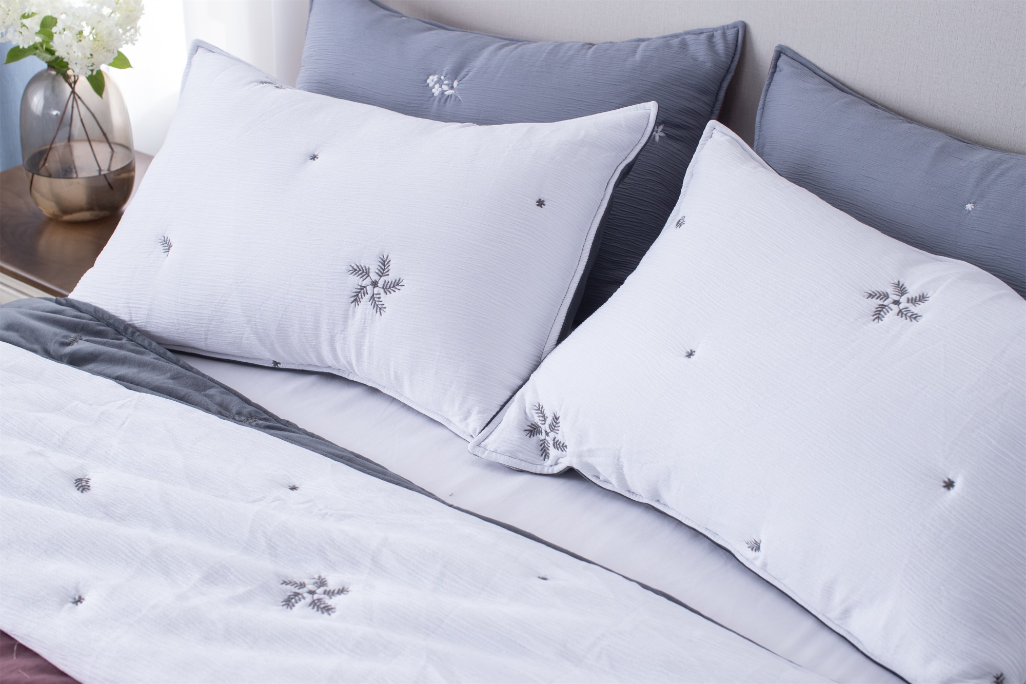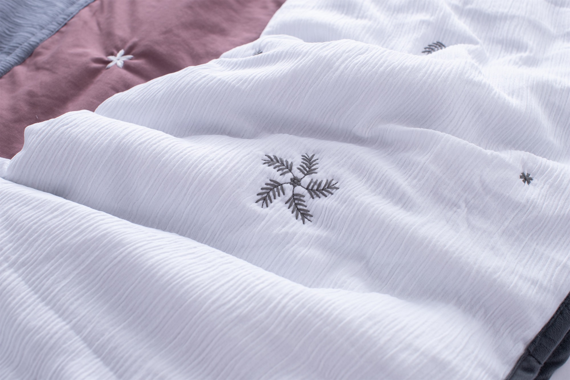 The delicate floral embroidery adds a charming and graceful touch, bringing softness and elegance to everyday home textiles.